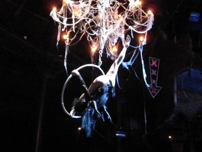 'TRASH CITY VAMPIRE' is an aerial performance with real live blood drinking.